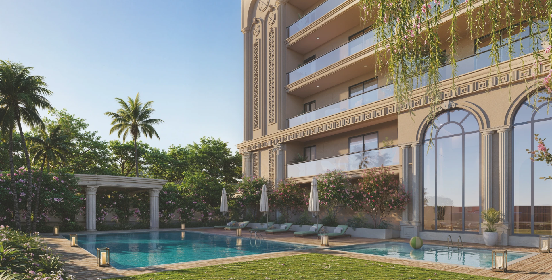 Our spacious 3 and 4 BHK homes are true sanctuaries of style and serenity. Large balconies offer panoramic views, interiors are bathed in natural light, and refined finishes by Flamant Interiors bring Mediterranean opulence indoors. Each home is a blend of contemporary design and timeless craftsmanship, reflecting DPS Contractors Pvt Ltd passion for creating spaces that both inspire and comfort.
